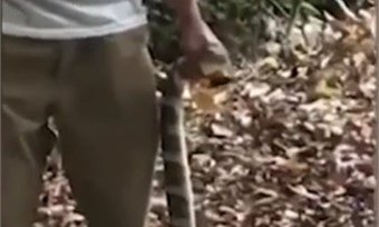 Напомним, что королевская кобра — одна из самых ядовитых змей на планете. Человек может умереть спустя 15 минут после ее укуса.