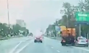 На кадрах, опубликованных на сайте life.ru видно, как автомобиль стражей правопорядка на большой скорости пытается обогнать грузовик, но тот поворачивает вправо, в результате чего происходит трагедия.