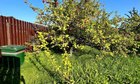 На участке очень много плодовых деревьев и кустарников , участок огорожен забором .